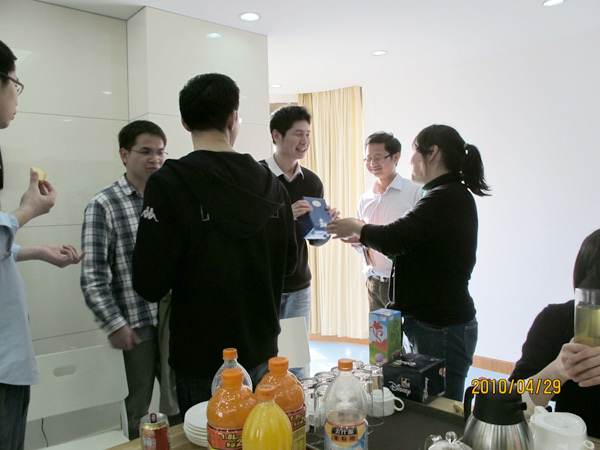 金思維例行每月(yuè)茶話會——可(kě)愛的莫姐作爲代表贈送生日禮物小路啦