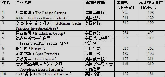 2:近年籌資(zī)額最大的前十家私人股本運營公司(2002.12007.5