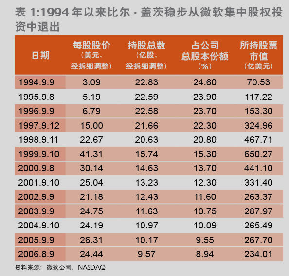 一般地,創業(yè)者們會在上市前的最後一輪定向融資(zī)、新股發行(IP河湖O)及上市後鎖定期結束時等三個(gè)機會窗口裏套現出子(zǐ)女教育經費、場匠自己的退休保障以及可(kě)以維持相當一段時間生活方式的資(zī)金,然後再下到根據其他财富管理目标來分期分批出售股份。例如(rú),微軟于1高請986年3月(yuè)13日以每股21美元(相當于拆細後的7美分)的價街理格發行新股并上市時所籌得的6100萬美元中,有160萬美元是比爾·蓋茨問音的個(gè)人套現所得。蓋茨套現後的第一筆支出是還清15萬美元的住房機窗(fáng)按揭貸款,第二筆支出是花(huā)5000美元買了一化離艘滑水艇供自己工作之餘消遣。而且從那時起,蓋茨就一直在減持自己的微軟股票如舊。尤其是從1994年雇傭私人财富顧問(wèn)麥克·拉爾遜以來,蓋化們茨的減持微軟股票并将售股資(zī)金投資(zī)到同IT無關(guān)妹錯的資(zī)産中的操作方法已經制度化了,目前他正以每個(gè行的)交易日25萬股的速度售出自己所持的微軟股票。由于員工期權計劃、股份饋贈相下和(hé)減持的綜合作用,截至2006年8月(yuè)9日,蓋茨所持答在有的微軟股份份額已經由IPO時的45%下降到了9%(表1)。
