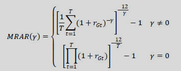 這裏γ表示風險厭惡程度,其中RRA( ∙) =γ+1
